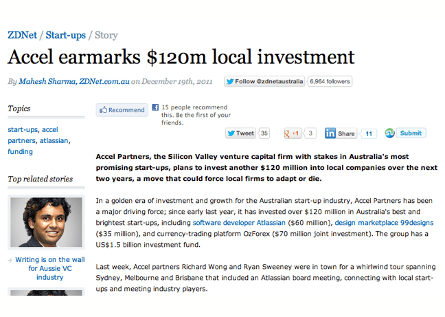This means that all of a sudden, the innovation system in Australia looks very different. The investment that Accel has made in Atlassian is their biggest ever, and they’ve been around for 17 years.
