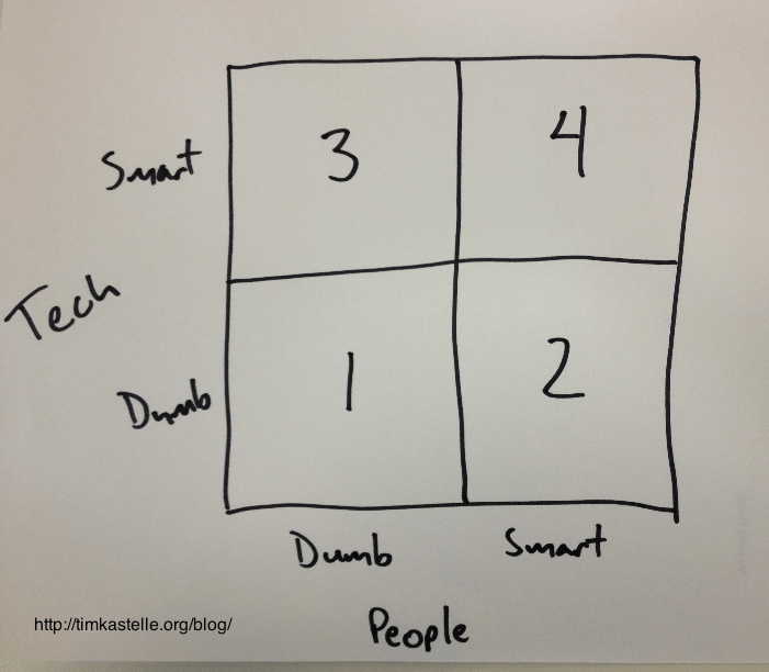 This often seems like a logical endpoint, but smart tech/dumb people is an extremely unstable system. For the latest proof, look at the latest news from high-speed trading – the blowup of Knight Capital.